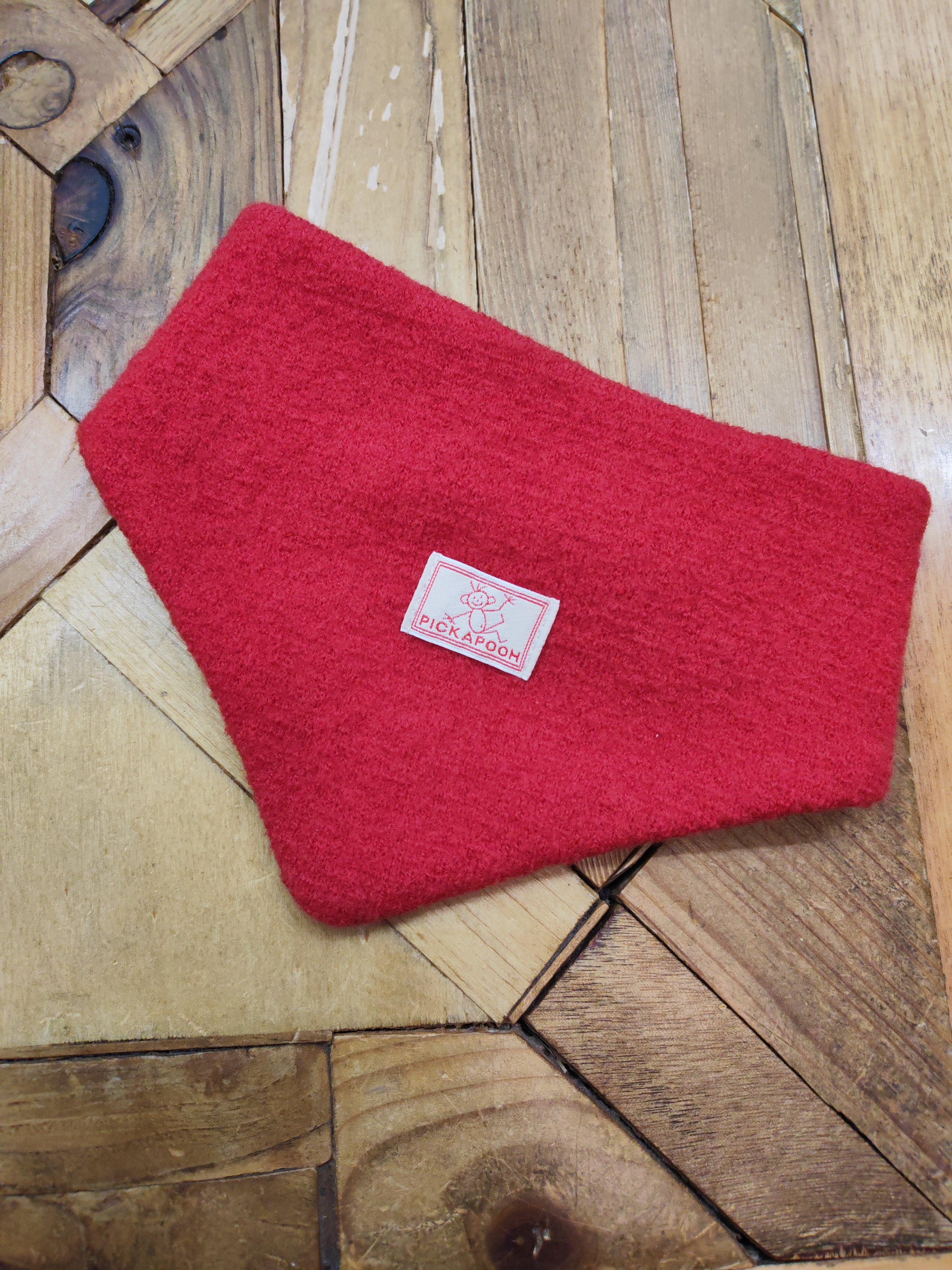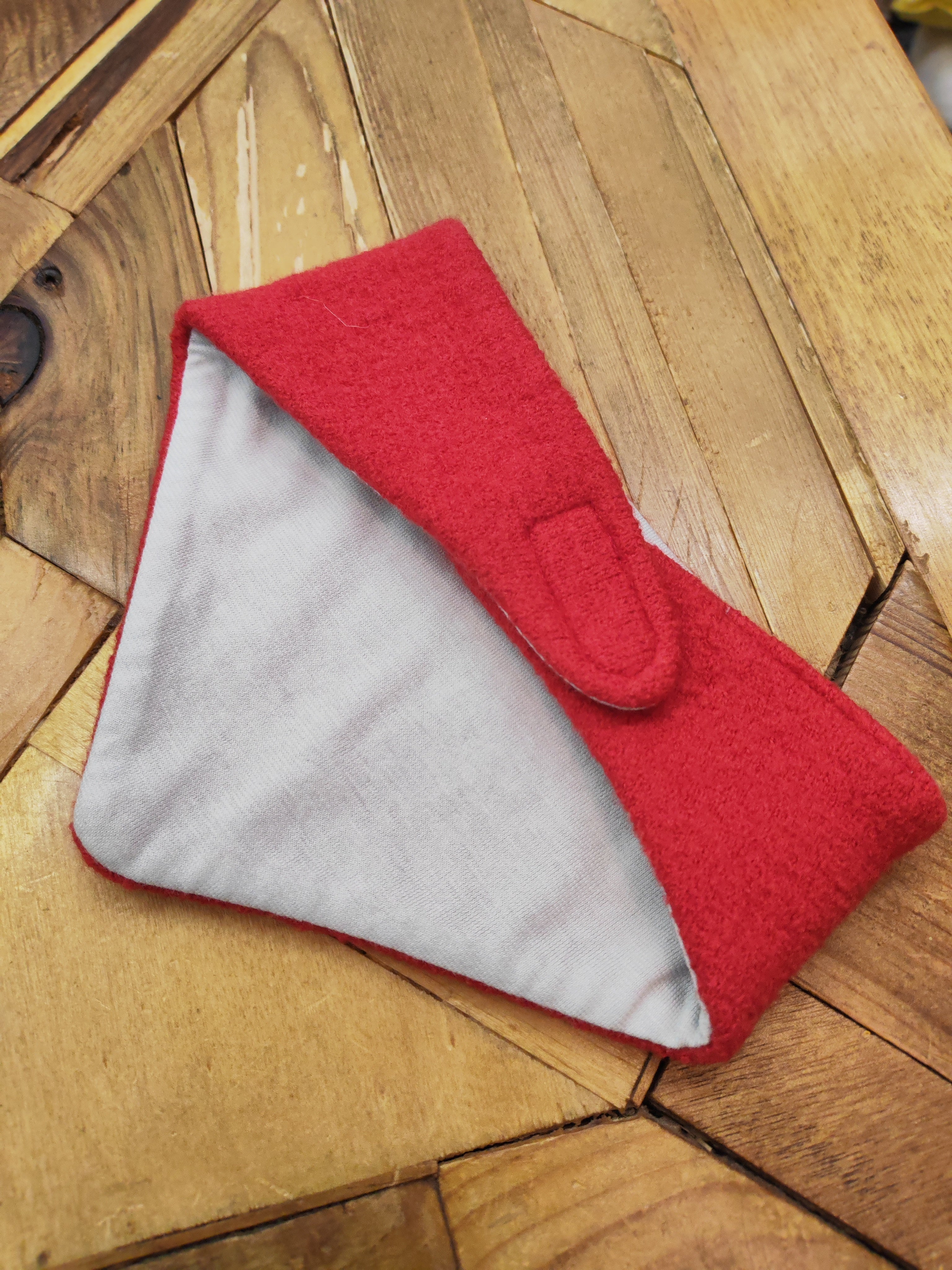 Triangolino in lana cotta rosso con velcro e fodera di cotone per bimbi piccoli 6/12 mesi
