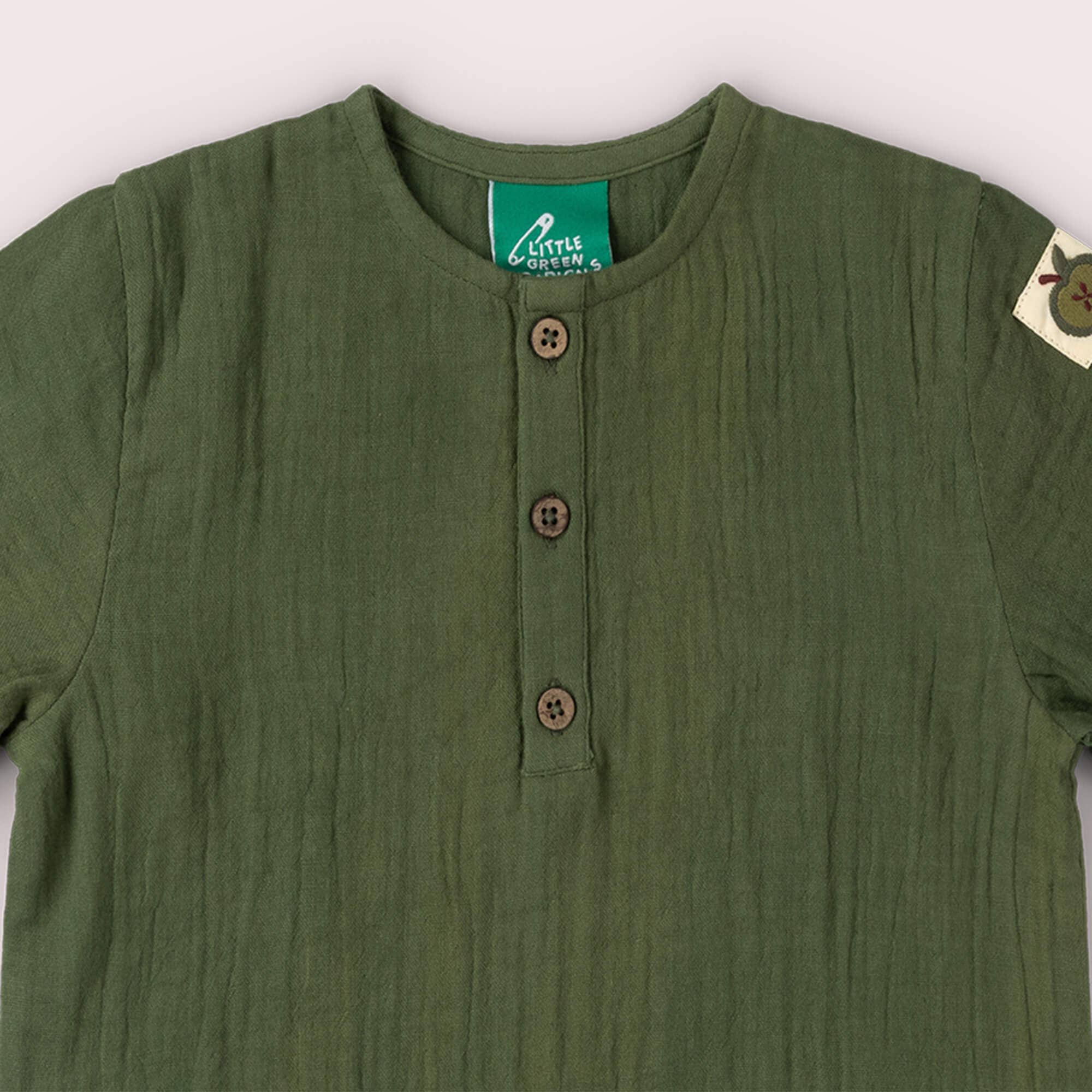 Maglietta a maniche corte verde in mussola di cotone